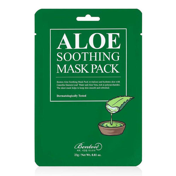 Benton Aloe Soothing Mask Pack Sheet helps to hydrate and soothe skin.