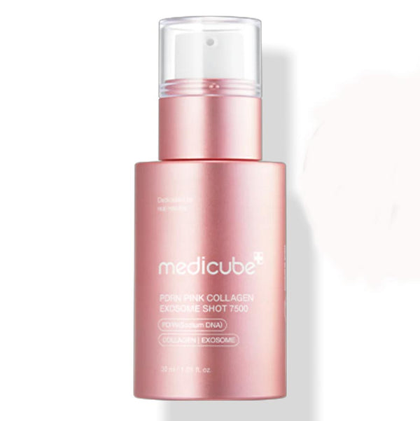 Medicube PDRN Pink Exosome Shot Serum 7500 30ml contains 7500PPM exosomes offers high-end pore care for the pore-caring experiencers with noticeable effects.