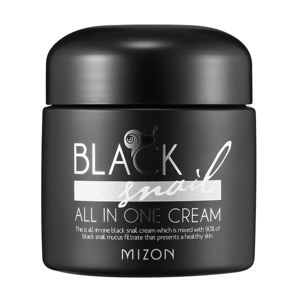 Mizon Black Snail All In One Cream is formulated with 90% black snail filtrate to deeply hydrate and nourish the skin.