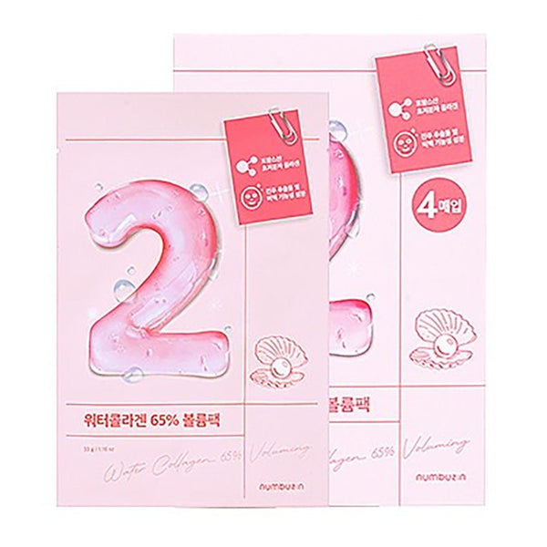 Numbuzin No.2 Water Collagen 65% Voluming Sheet Mask is a firming sheet mask that makes your skin plump and illuminating with ultra-low molecular collagen and pear ingredients.