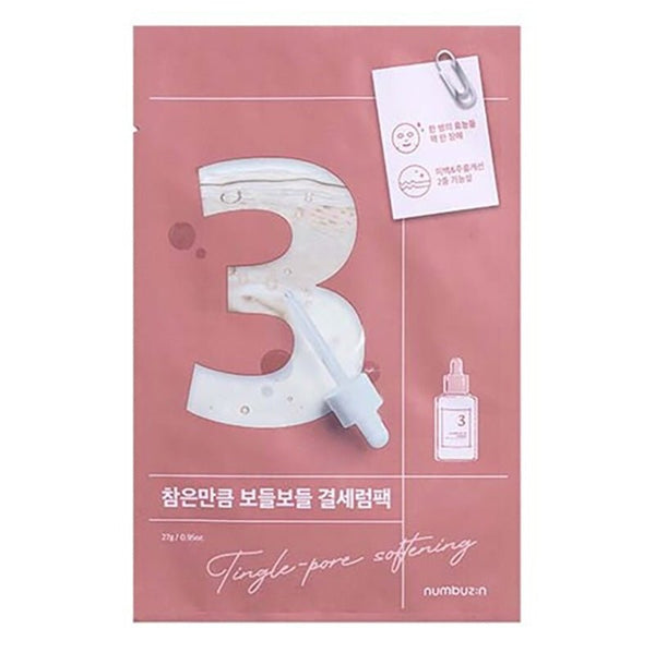 Numbuzin No.3 Tingle-Pore Softening Sheet Mask is infused with Tingle-Pore Complex™ to shrink pores, and antioxidant-rich galactose and bifida to soften skin.